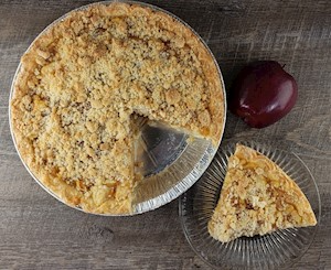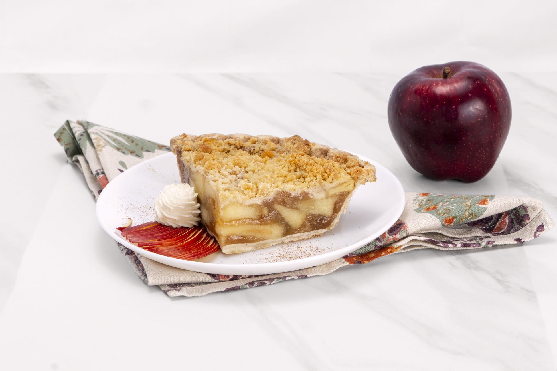 This pie is full of crisp apples tossed in our special blend of sugar and spices, sprinkled with a layer of our buttery crumb topping, and baked to a golden brown in our specially handcrafted gluten-free pie crust.