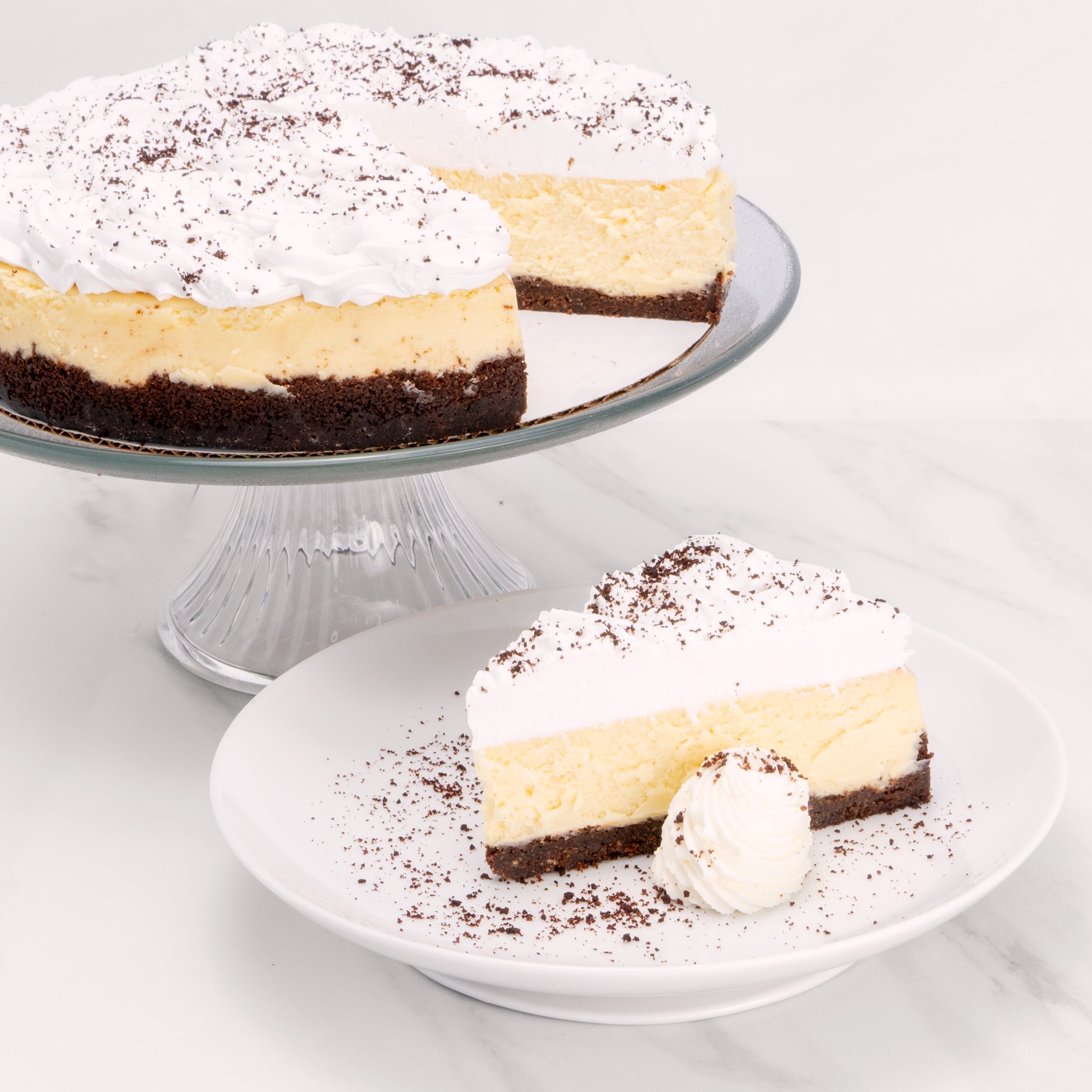 This rich cheesecake has a chocolate graham crust, is infused with just the right amount of Irish Whiskey to give it a kick, and is topped with a sweet, light whipped topping. Boozy and creamy, it's the perfect dessert if you're looking for a twist on traditional cheesecake.